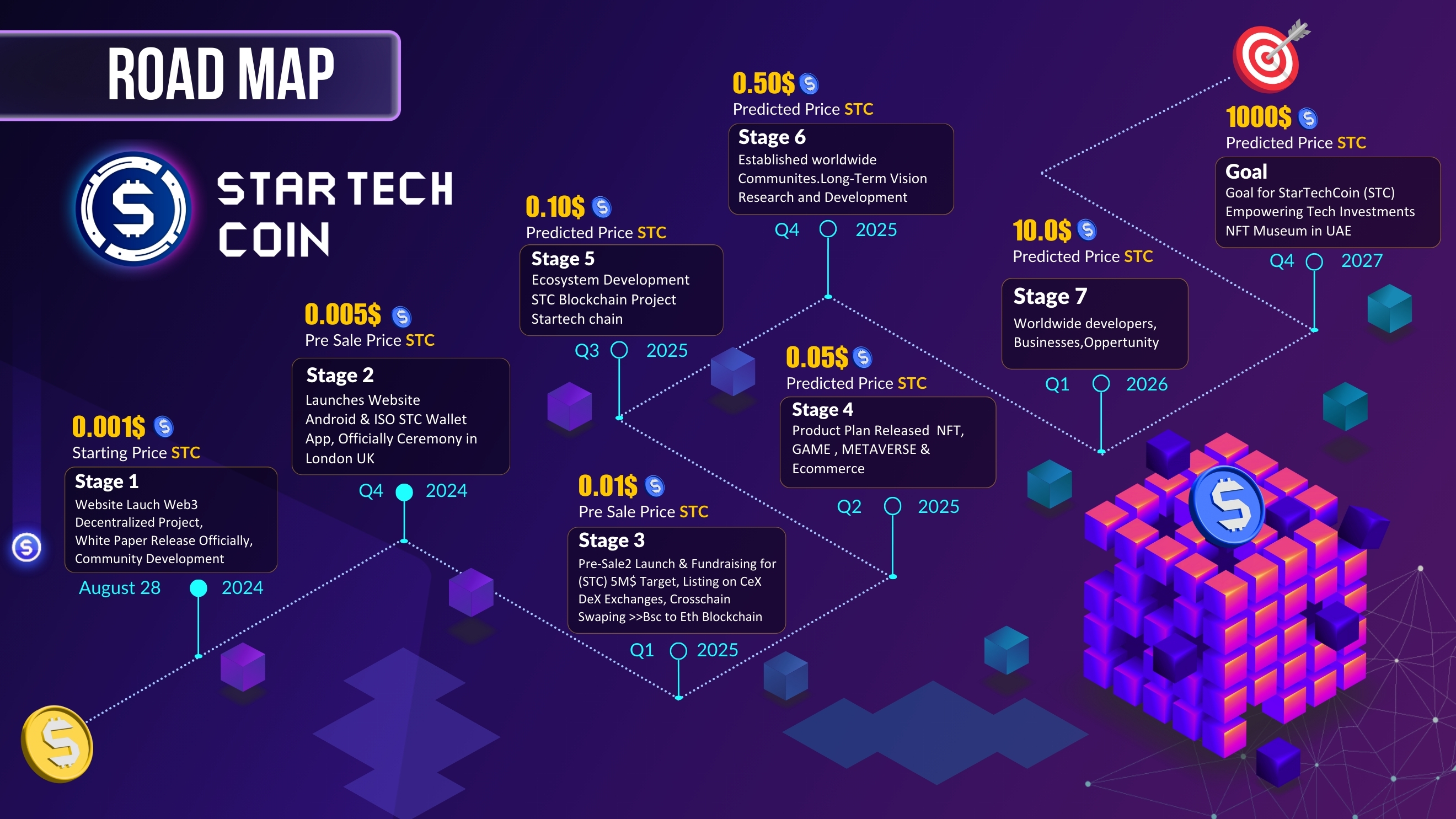 * **Product Plan Release:** Roll out strategic plans for **NFTs**, **gaming**, **metaverse**, and **e-commerce**, driving StarTechCoin (STC) into new markets and innovative sectors.